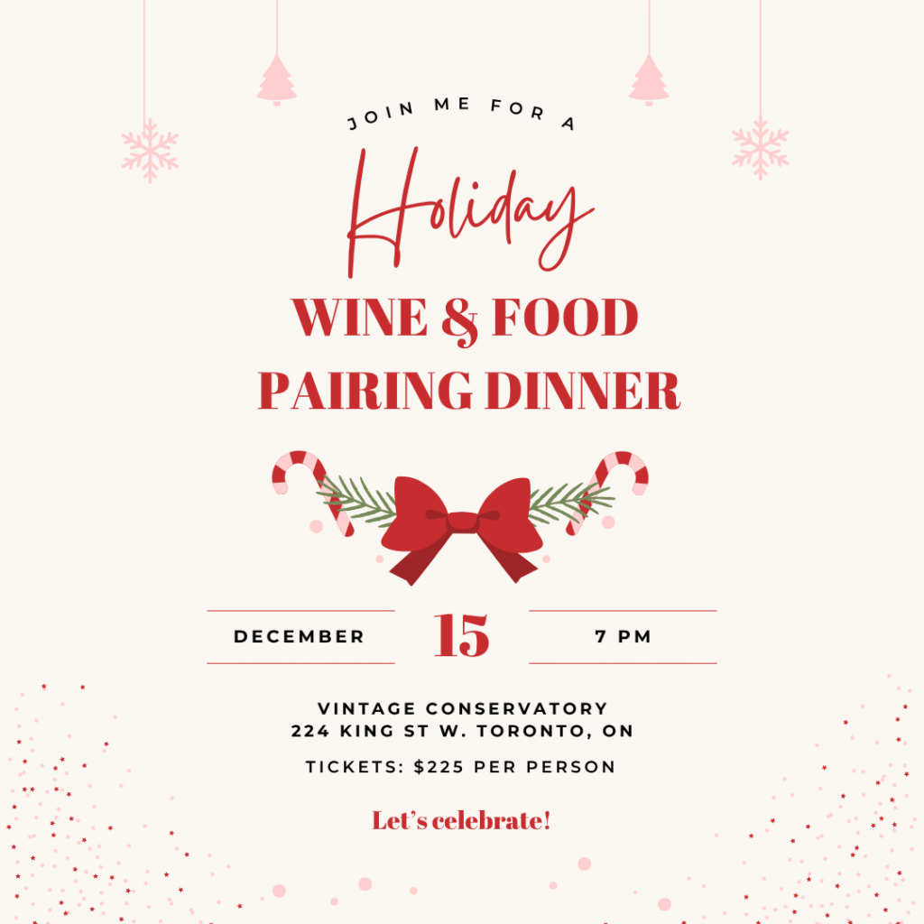 Celebrate the magic of the season with an unforgettable evening of fine wine, festive food, and warm company. Join us for a special Holiday Wine & Food Pairing Dinner, where each course will be thoughtfully paired with wines that highlight the flavours of the season.